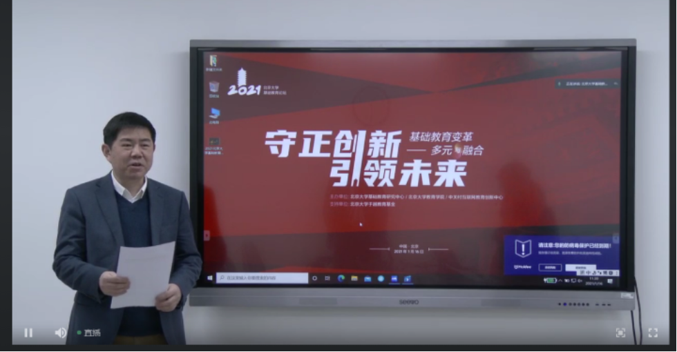 2021年1月16日上午,由MK体育官方网站、北京大学基础教育研究中心、中关村互联网教育创新中心联合办的“守正创新,引领未来”2021北京大学基础教育论坛通过线上线下混合隆重开幕,其中线下嘉宾会场设在MK体育官方网站的112报告厅。次论坛以“基础教育变革:多元与融合”为主题,包括主论坛和个分论坛及工作坊来自全国各地的专家学者和一线教师共名嘉宾加了本次论坛线上线下研讨与报告,数千人通过在线观看直播参与了此次论坛