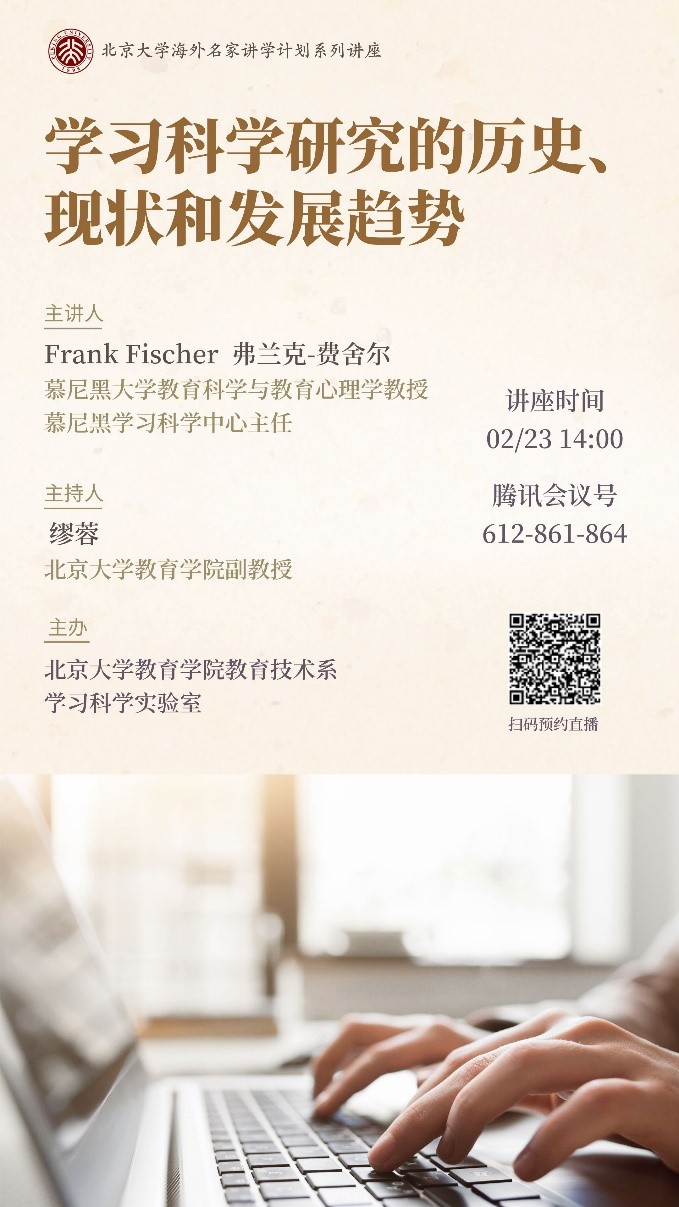 主讲人简介:弗兰克•费舍尔(Frank Fischer),他是学习科学领域的领军人物,曾任慕尼黑大学心理与教育科学学院院长、心理学系主任、国际学习科学学会主席,美国教育研究期刊(AERA)副主编、担任AERJ、LAI等5个学习科学领域权威杂志编委。受邀在20余个学术会议中作特邀报告,并受邀在西门子公司及多个公共组织中作特邀讲座、在慕尼黑卫视及《明镜在线》等多个报刊、无线电广播及杂志期刊中作访谈,影响力甚广。他也是知名专著《国际学习科学手册》的主编,论文荣获NASA虚拟设计中心评为“最具实用性研究论文奖”、期刊Learning and Instruction(教与学,SSCI)2007年至2011年“最高被引论文奖”等7个奖项,主持或参与十余个欧盟及德国政府资助项目,其中主持的研究项目“REASON-学术推理与论证”获得德国政府四百万欧元资助,参与主持的“STELLAR-持续的技术增强学习的大规模多学科研究”研究项目获得欧洲委员会490万欧元资助。