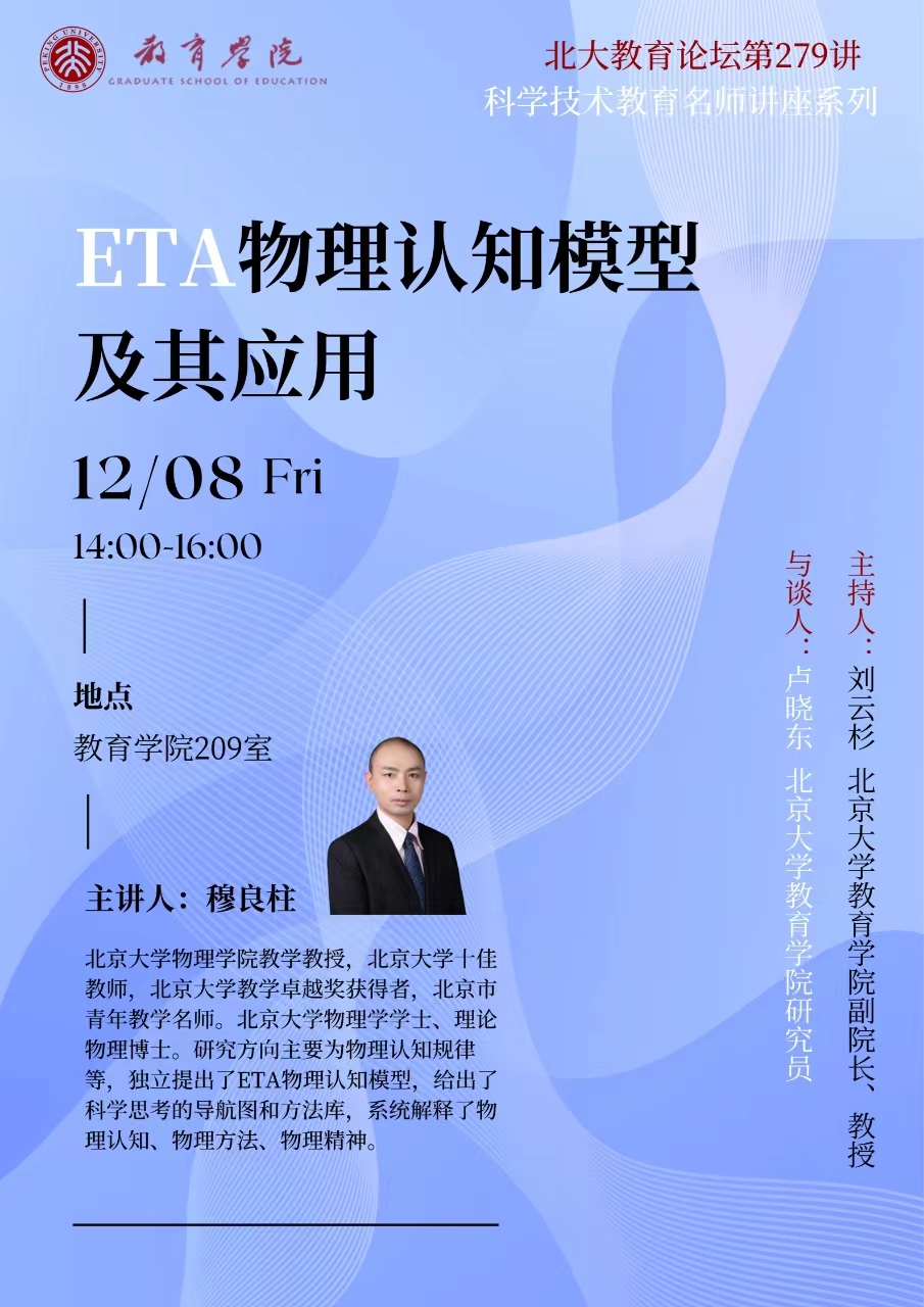 北大教育论坛第279讲 | 科学技术教育名师讲座系列:穆良柱:ETA物理认知模型及其应用