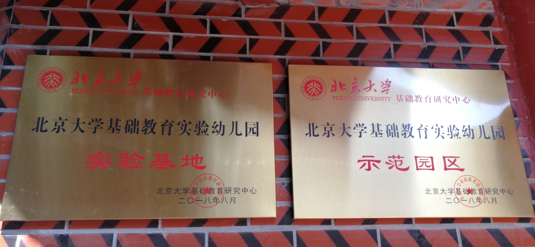 涉嫌伪造的北京大学基础教育研究中心“实验基地”和“示范园区”牌匾