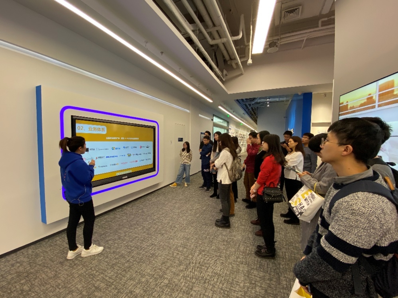 参访伊始,代声贵老师向参访同学们发放了集团精心设计的门票和伴手礼。随后,好未来集团讲解员盛晶晶带领参访团在好未来集团总部的展厅进行参观,她向参访团介绍了好未来集团的发展历程、业务体系、企业文化、发展现状等,还介绍了好未来集团在教育公益方面做出的努力和贡献。