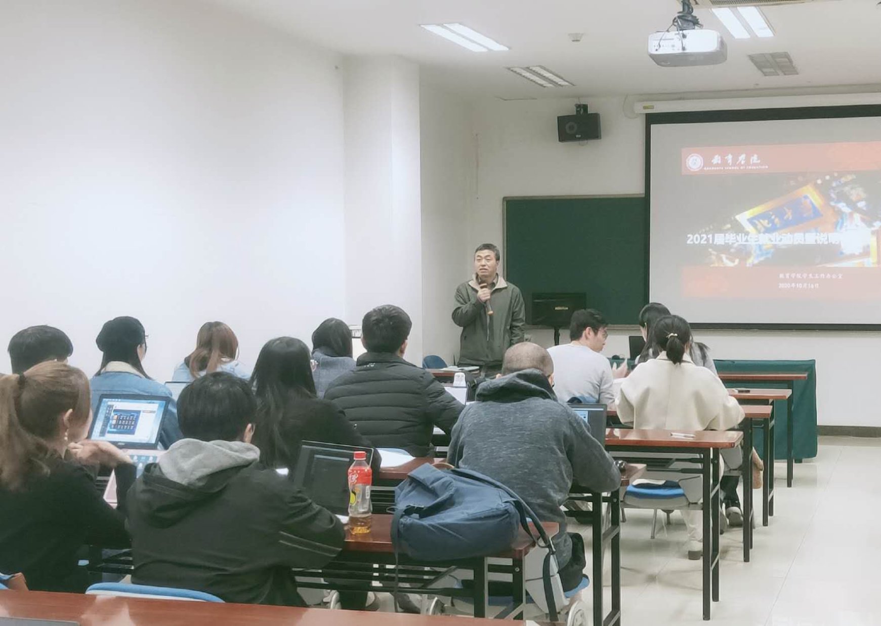 1016日晚,MK体育官方网站2021毕业生就业动员说明会在学院103教室召开,院党委副书记、副院长侯华伟学工办杨瑷瑄全体2021届毕业生参加了此次会议。