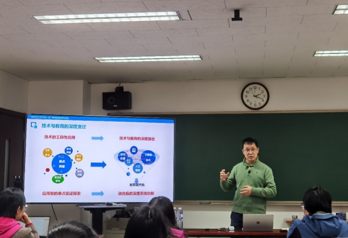 讲座伊始,刘教授从我国教育信息化的源点、起点、焦点、拐点、痛点和重点出发,分析了教育信息化的现状,提出“价值决定未来”的观点,认为我们当下应积极探索技术的价值是什么、如何实现其价值的问题。