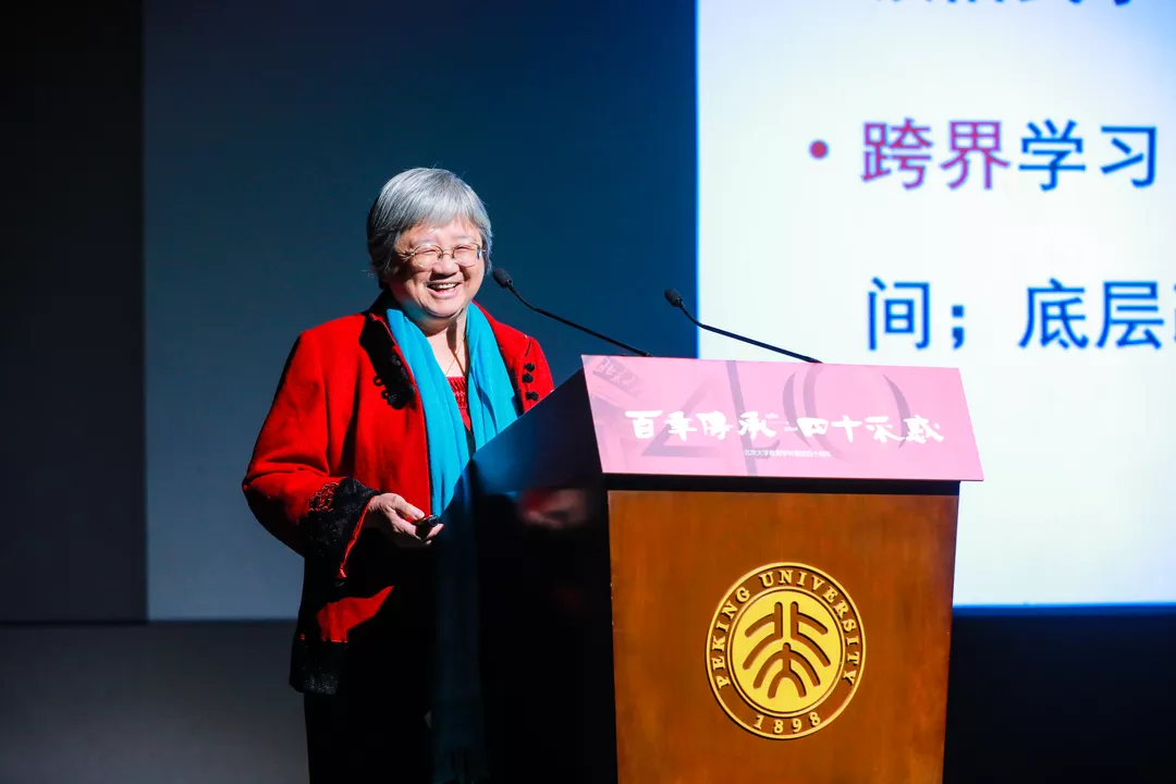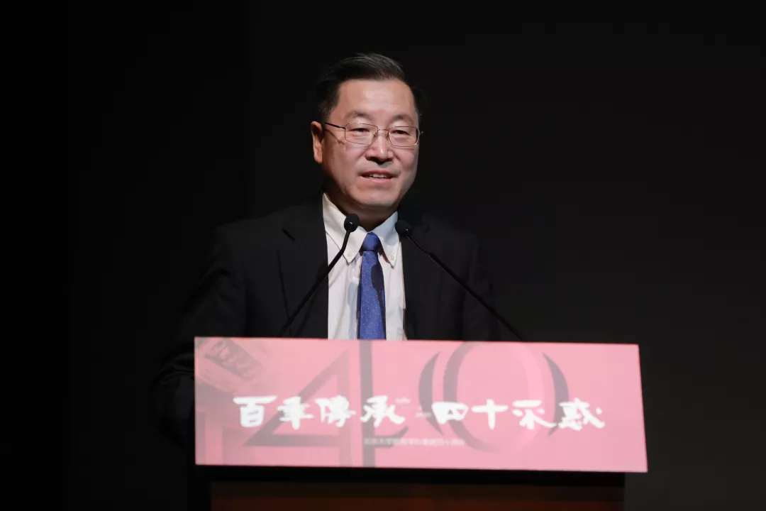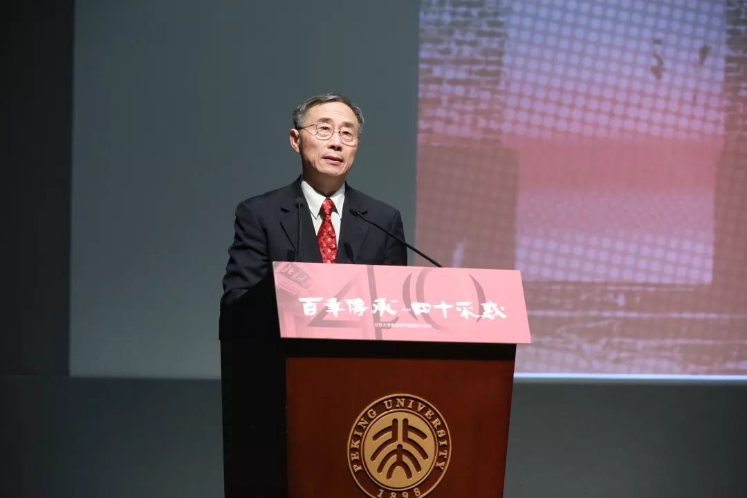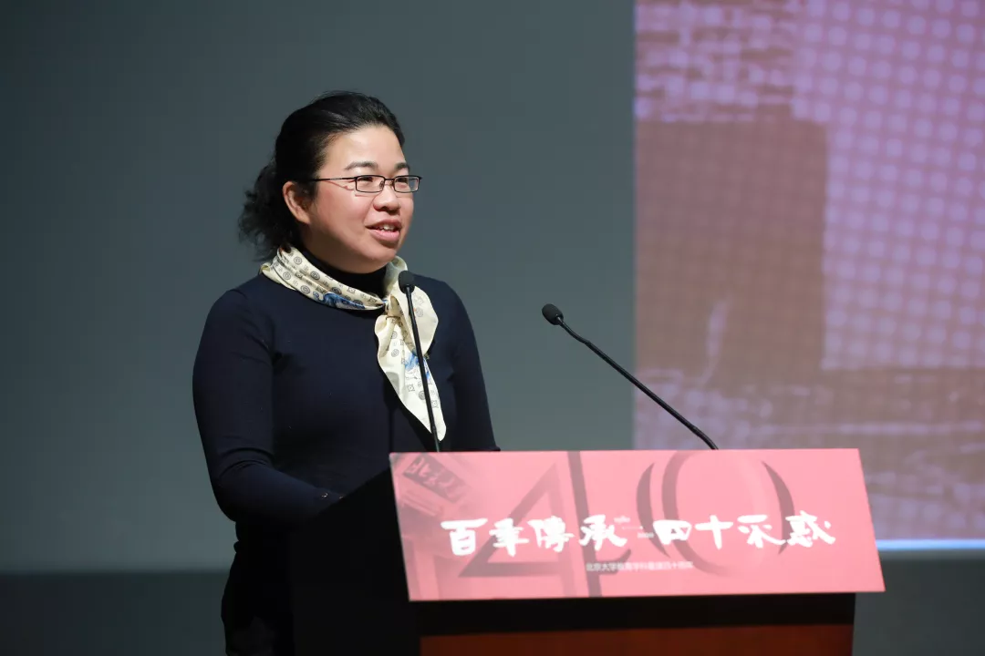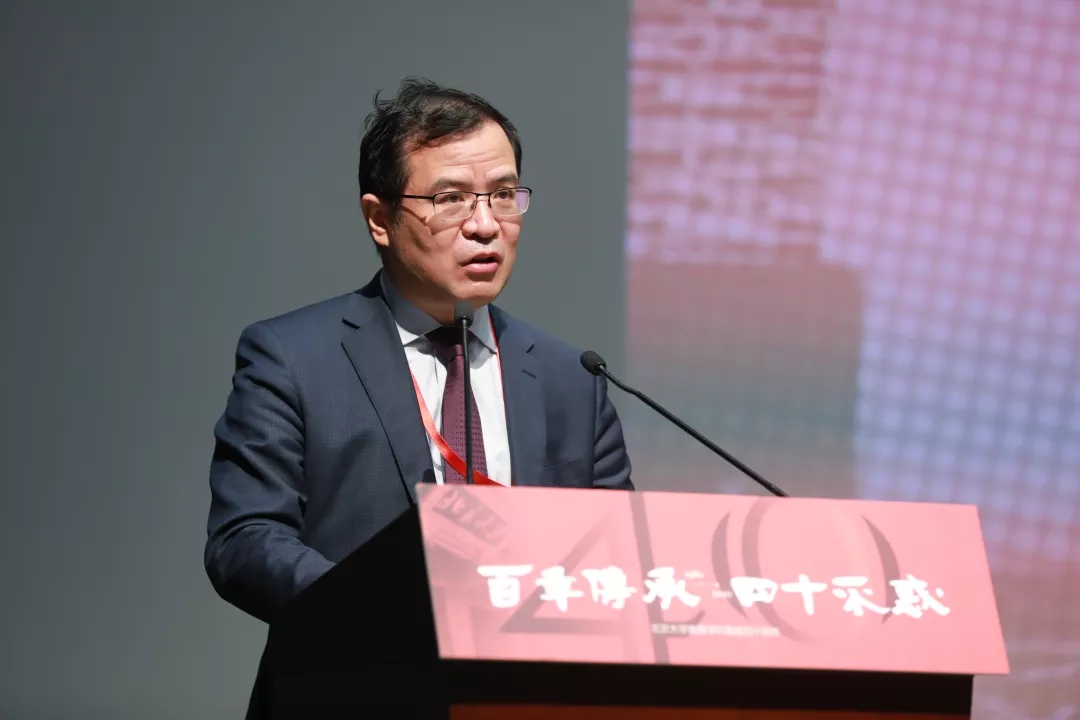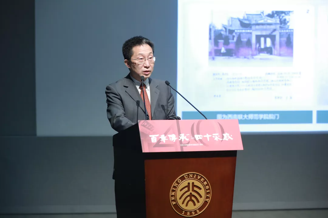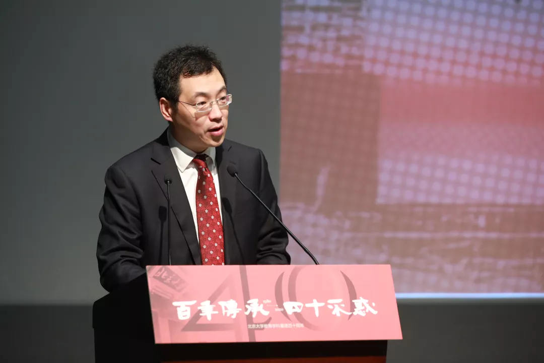 纪念仪式由教育学院副院长哈巍主持。仪式伊始,伴随着《百年传承,四十不惑》的短片,与会嘉宾一同回顾了北大教育学科建立、重建、拓展和壮大的历史演进。随后,北京大学党委副书记叶静漪、教育学院名誉院长闵维方、中国高等教育学会副会长管培俊、清华大学教育研究院院长石中英、威斯康星大学麦迪逊分校教育学院Adam Nelson教授、教育学院教师代表杨钋副教授、教育学院院友代表伊利诺伊大学芝加哥分校教育心理系阴悦副教授、教育学院学生代表陈得春、教育学院党委书记及院长阎凤桥先后致辞。