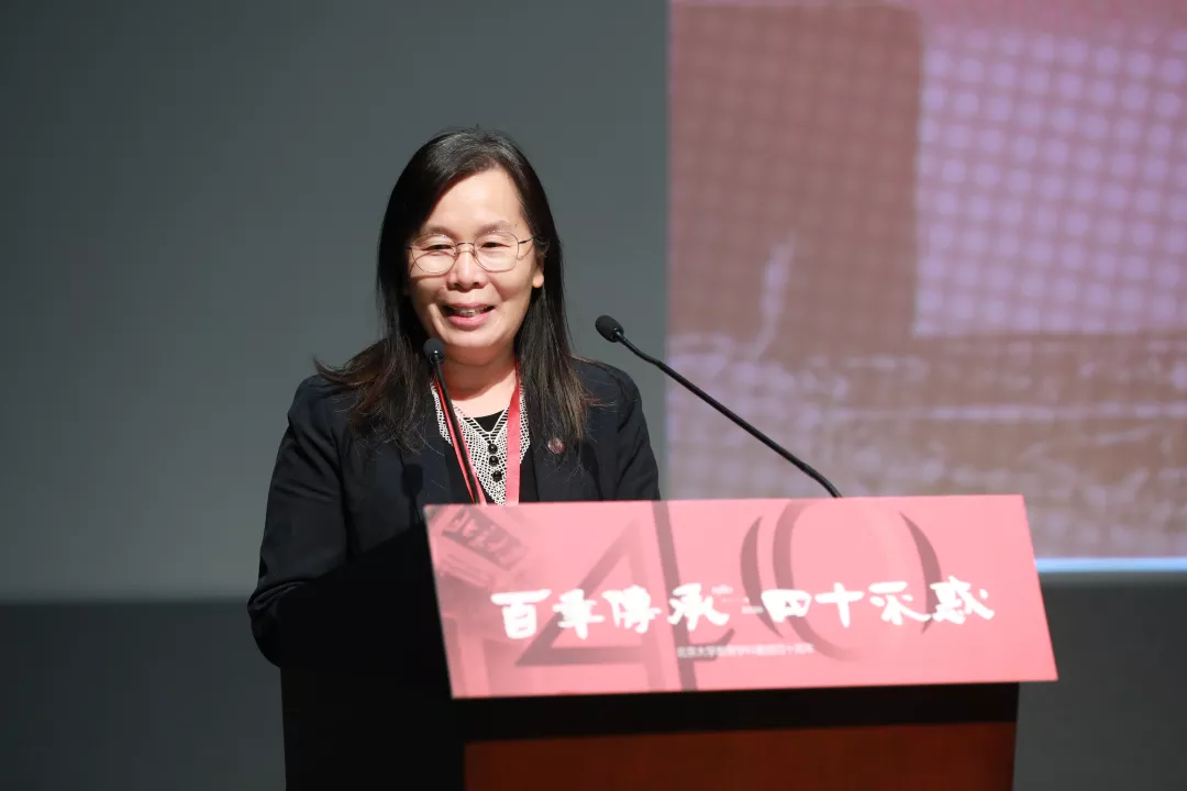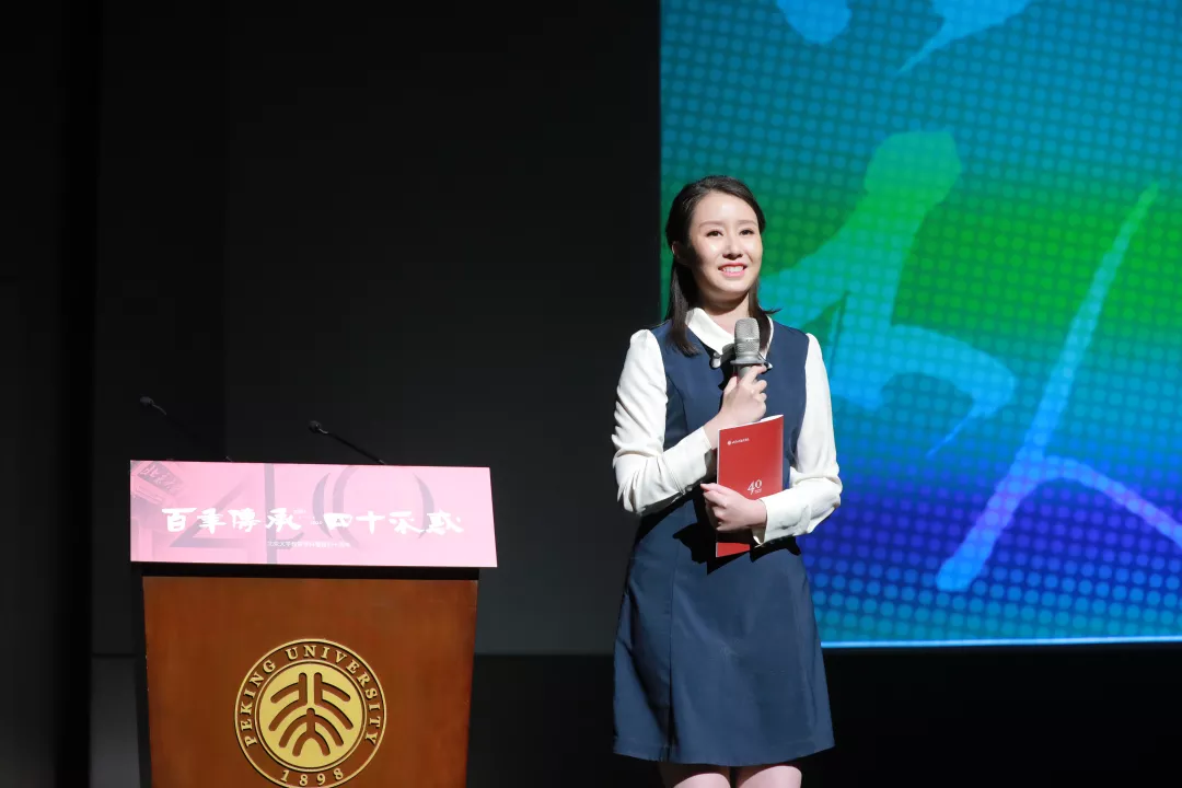院友代表阴悦强调了北京大学思想自由、兼容并包的传统,提出在当今复杂的国际环境中相互理解和相互包容的重要性。她回忆了北大高教所对自己人生发展的重大影响,并结合自身经验探讨了“教育与人的幸福”之关系。