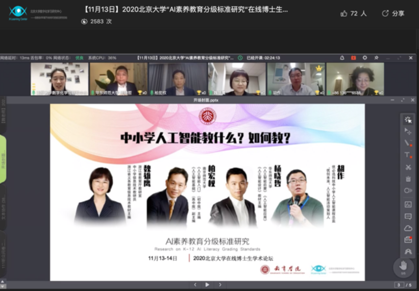 2020年11月13-14日,北京大学“AI素养分级标准研究”在线博士生学术论坛在ClassIn云端教室顺利举行,收看直播的观众总计达3700人次,反响热烈。