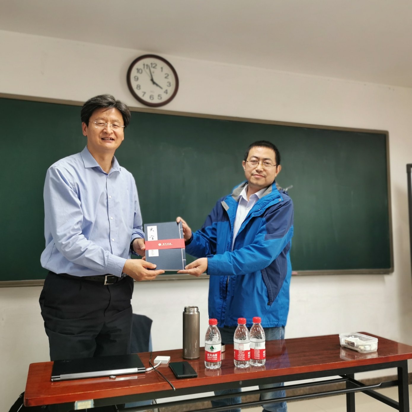 最后,贾积有教授向韩锡斌教授赠送纪念品《大学》、并赋藏头诗一首,表达感谢。
