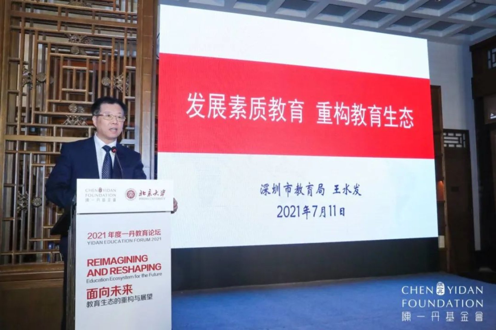 陈一丹基金会发起人、腾讯主要创始人陈一丹博士也发表开幕致辞,他认为教育是一个生长而非制造的过程,教育创新既需要深刻理解当下的社会关切,更要关注人类的未来。教育是对人的培养,培养了怎么样的人就会有怎么样的未来,社会发展的前景就在今天的教育。