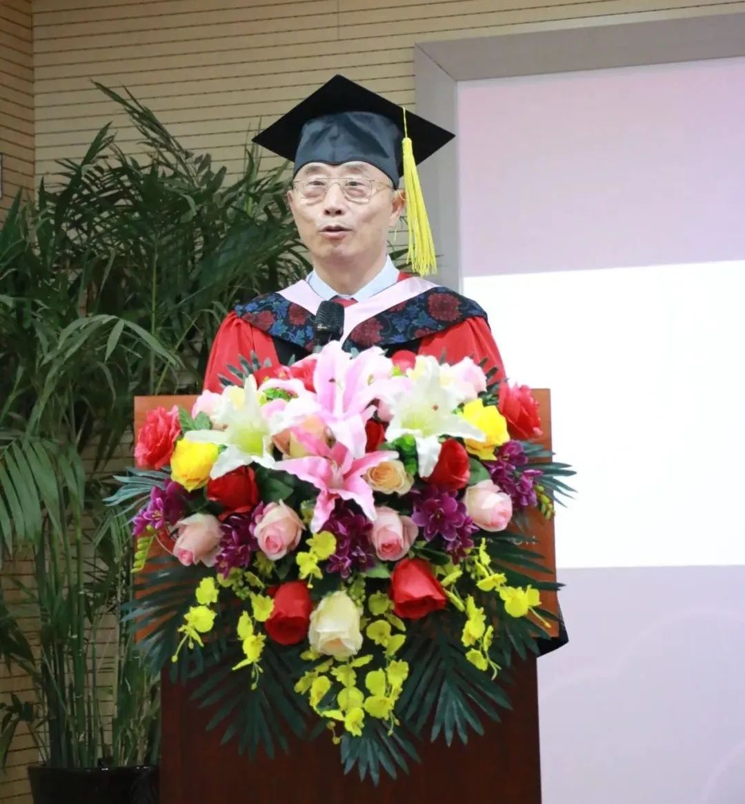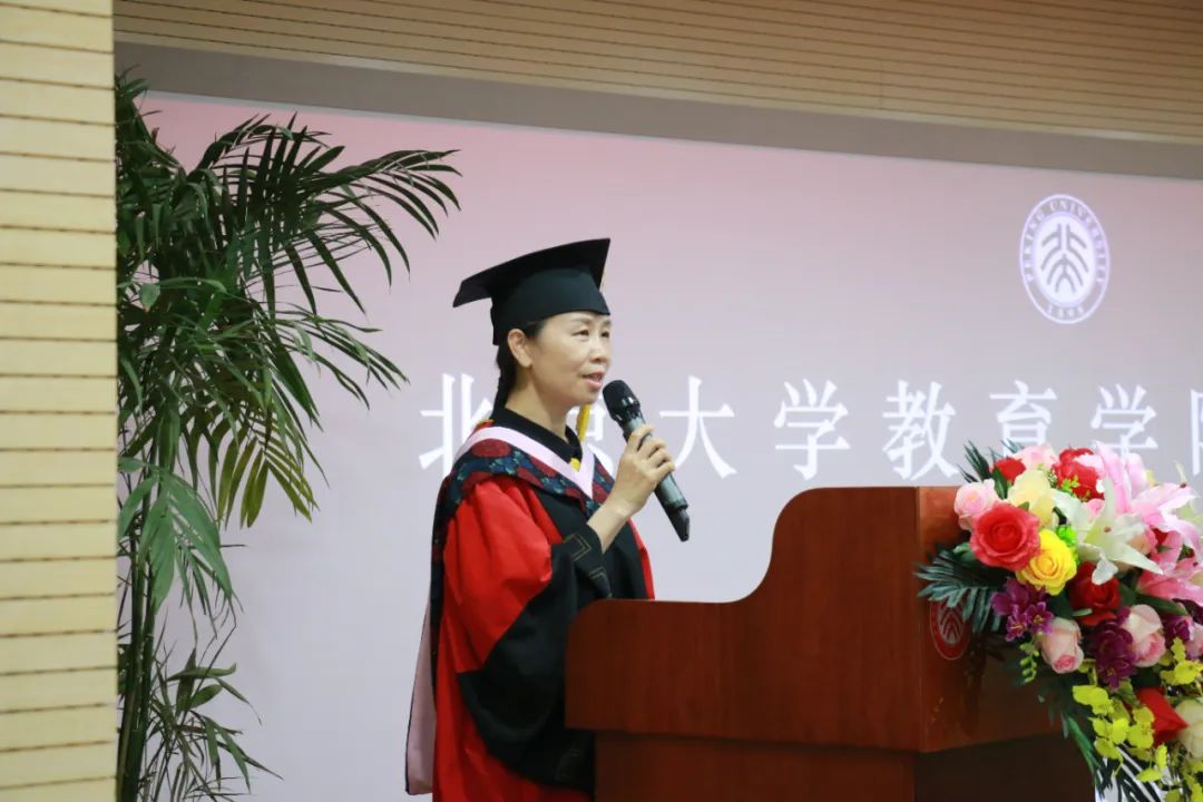 教育学院名誉院长闵维方教授致辞。他表示,社会背景与特定的历史条件影响和塑造着人的生活和成长。面对百年未有之大变局,要坚持团结协作、守正创新与终身学习。他向全体毕业生同学表示热烈祝贺,并寄语毕业生在未来的学习、工作与生活实践中,检验对教育的信仰、承诺和忠诚,眼观世界,胸怀天下,将个人理想追求与国家民族发展结合起来,成为社会中坚、国家栋梁。