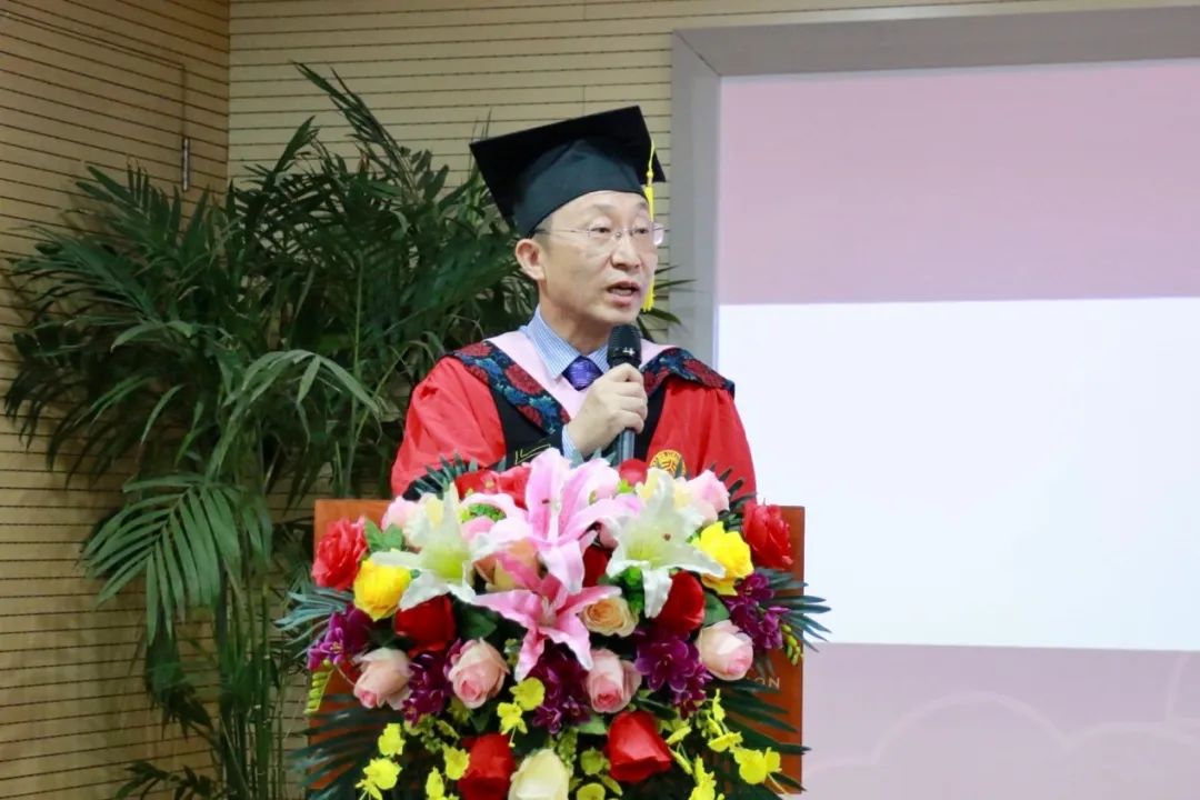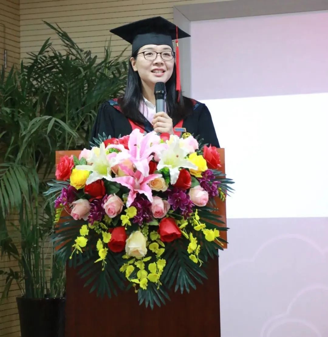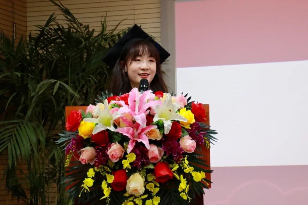 导师代表王蓉教授作题为“在不确定的世界中如何完成一个‘我’?”的发言。她与毕业生同学们分享了求学时代恩师们留下的深刻话语,并结合自身经验与深入思考,为毕业生同学们提供处理自我与他人、自我与世界之间关系的智慧参考。王蓉教授寄语即将步入社会的毕业生们,要有完成一个我的自觉,小我而大天下,以更加丰盈强大的自我,担负起未来的期望与重托。