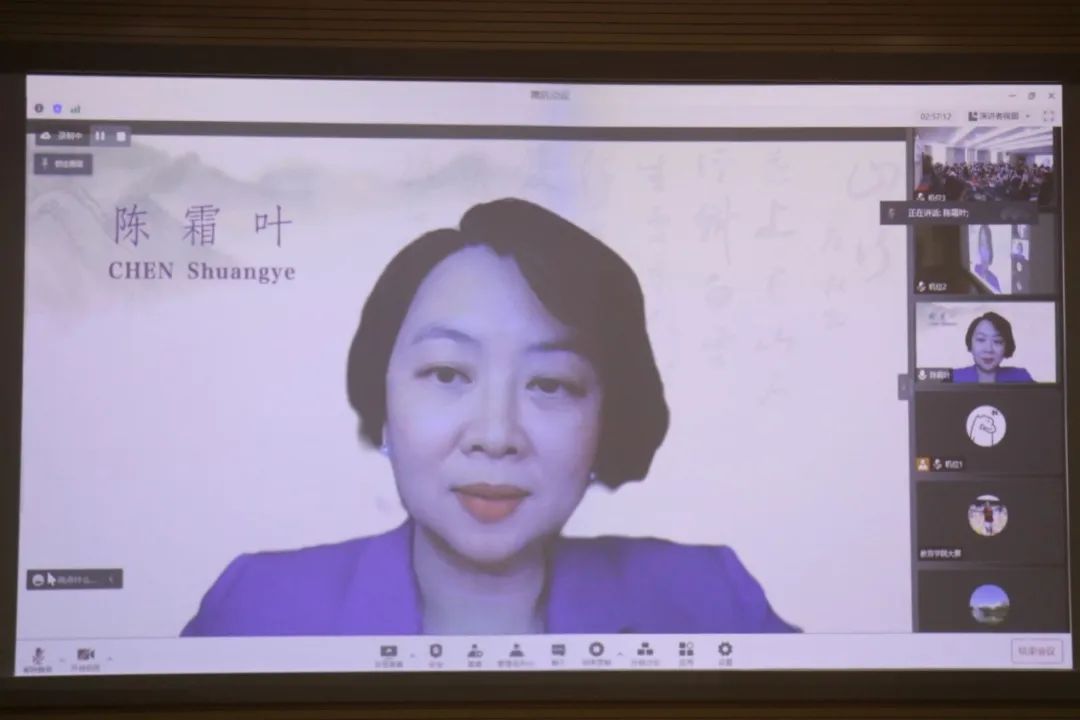 校友代表、2001届硕士毕业生、华东师范大学教育学部副主任、课程与教学研究所陈霜叶教授通过远程视频方式为毕业生送上祝福。她勉励毕业生同学们相信困难终会过去,坚持与人为善,踏实做人,有所坚持,有所贡献。