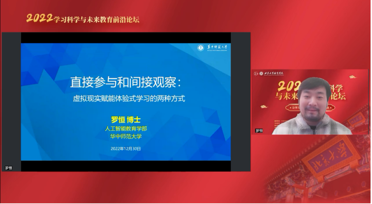 随后,MK体育官方网站副教授吴筱萌继续主持上午的会议。香港城市大学教授郭琳科带来了名为“学习分析:一些实践与教训”的精彩报告。郭琳科教授从学习分析的定义和学习数据的模型出发,详细介绍了该团队的两项研究“投入学习对学习成绩的影响”、“确定培养学习者参与度的前提条件”,最后对于学习分析的大规模实施提出了意见和建议。随后,来自华中师范大学人工智能教育学部的罗恒副教授带来了名为“直接参与和间接观察:虚拟现实赋能体验式学习的两种方式”的报告。罗恒副教授从儿童交通安全教育的迫切需求出发,构建了基于“探索-复盘-练习-反思”的体验式学习模式,在实践验证中发现该模式能够促进学生的知识学习与行为表现,同时指出间接体验和小组反思的结合应用能够有效推动虚拟现实教育的发展。