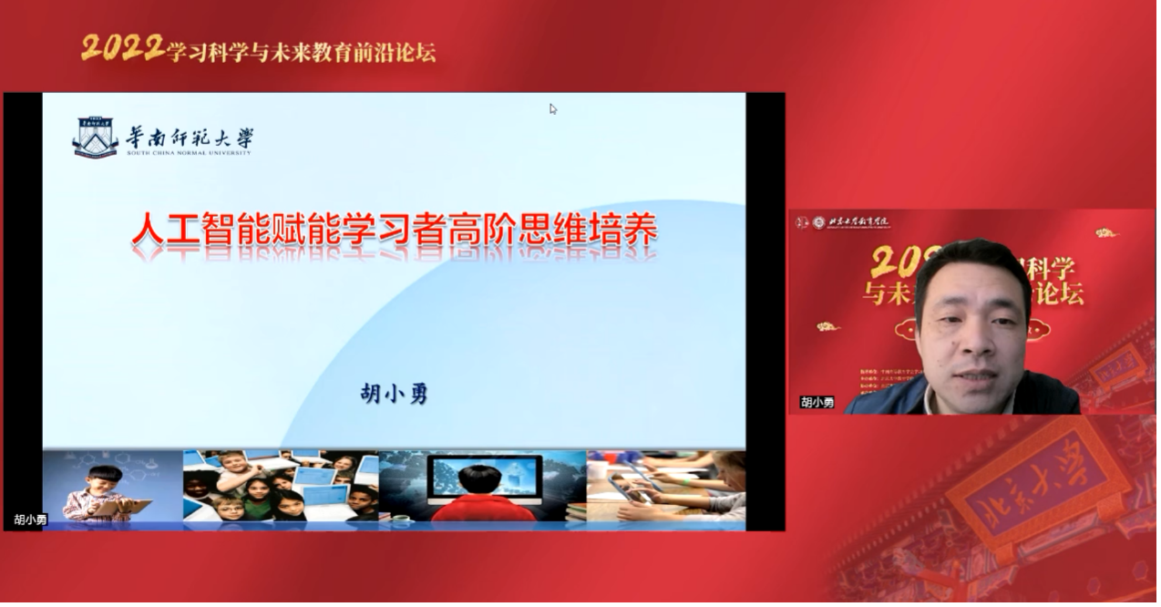 随后,华南师范大学教育信息技术学院副院长胡小勇教授的报告主题为《人工智能赋能学习者高阶思维培养》。胡小勇教授基于教育信息化发展的新进程,深入剖析了高阶思维的内涵与特征,进一步梳理了AI赋能高阶思维培养的相关进展,点明了AI赋能高阶思维培养的十个方向。报告最后,胡小勇教授简要介绍了在人工智能课程中协作学习提升学生创造性思维的案例。