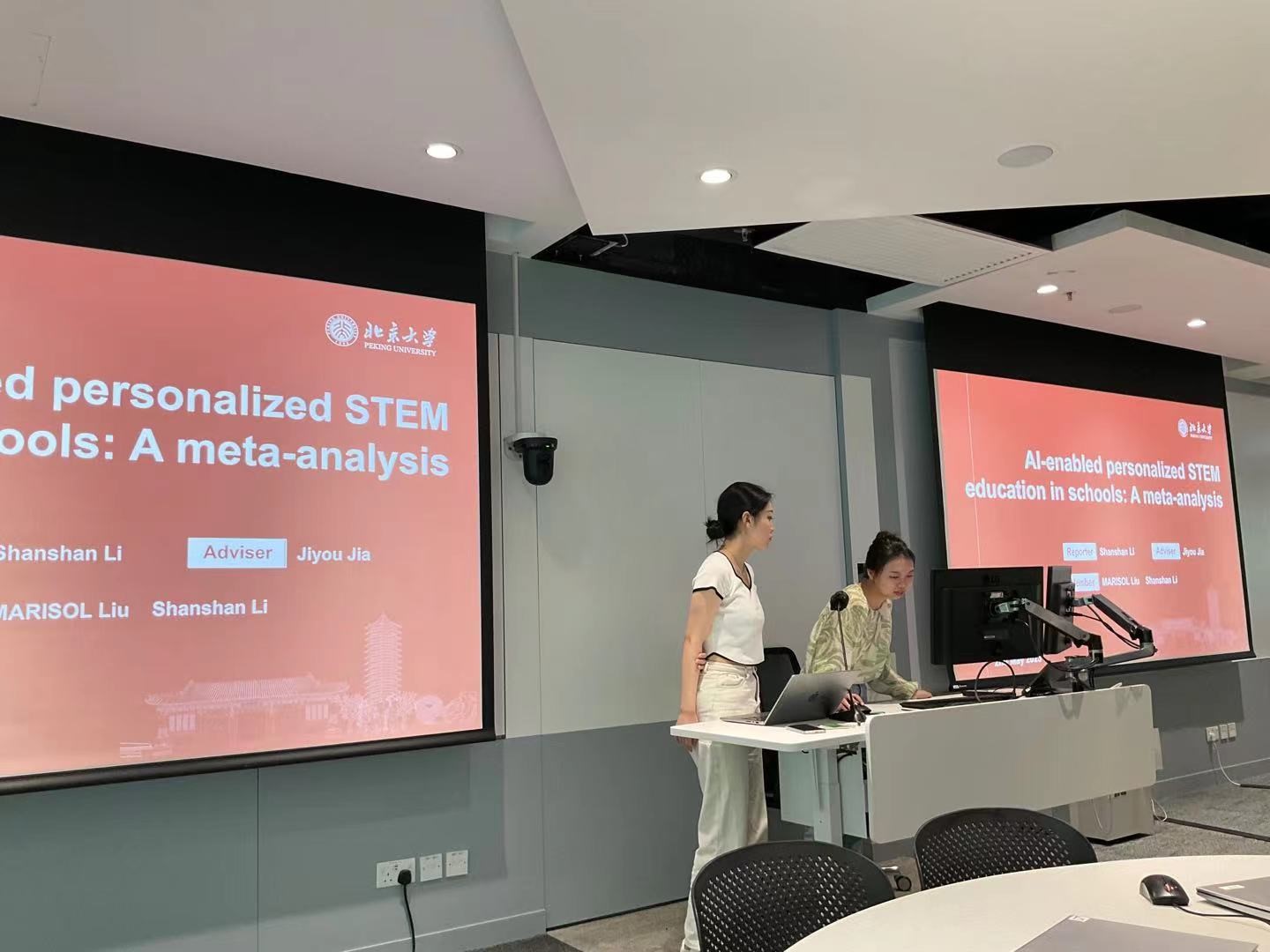在技术支持的教学和课程变革子领域,项目经理梁敏介绍了总体情况,教育技术系硕士生李姗姗和刘怀亚报告人工智能支持的中小学STEM教育文献综述进展,张誉月和陈昂轩报告智能评测支持的语言学习文献综述进展,来自教大人文学院的李主圣(Ju Seong LEE)助理教授及其博士后介绍了技术支持的语言学习研究进展。贾积有、教大博文及社会科学学院的数学与信息技术系系主任杨良河教授、郑国城副教授、孙丹儿助理教授、香港浸会大学朱金鑫研究助理教授等就这些研究进展进行了点评并提出了发展建议。
