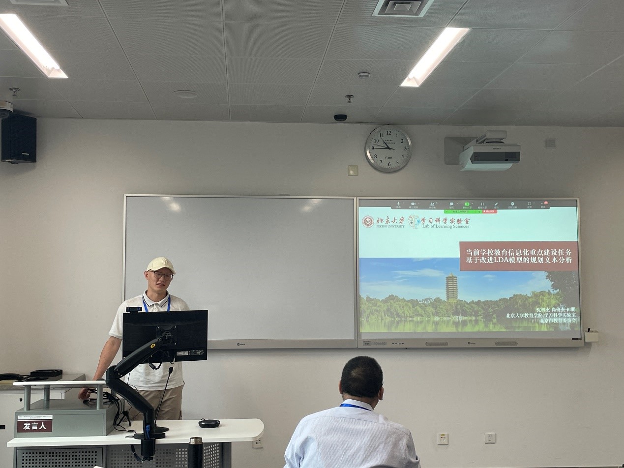 在子会议九“教育技术创新、政策与实践”中,22级硕士生沈科杰作了题为《当前学校教育信息化重点建设任务——基于改进LDA 模型的规划文本分析》的报告。教育信息化是实现教育现代化的重要力量,对示范学校的教育信息化规划文本开展研究,将有助于发现当前学校信息化的重点任务。研究将某市2020年的学校教育信息化示范规划文本作为研究对象,采用Word2vec引导的LDA主题模型对规划文本加以分析,发现当前学校教育信息化的发展趋势包括:以教学模式变革为核心;建设任务因校制宜,线上数据应用成为建设热点;校级教育信息化以应用为导向,呈现出与教育阶段特征紧密联系的特点。