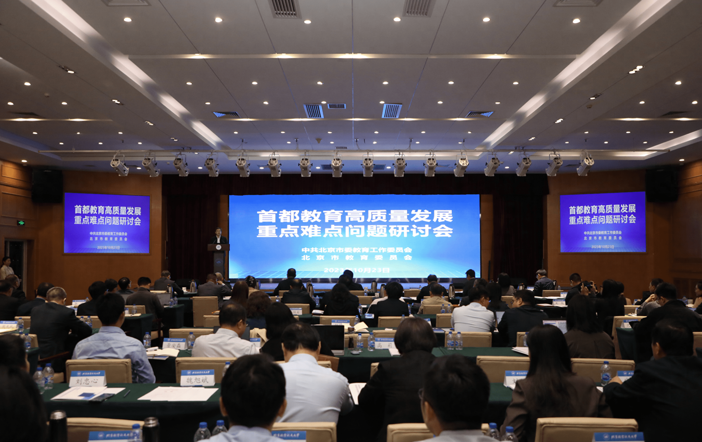 10月23日,北京市委教育工委、市教委召开“首都教育高质量发展政策研究基地”签约仪式和首都教育高质量发展重点难点问题研讨会。北京市委常委、教育工委书记游钧出席会议并讲话。北京大学党委常委、副校长董志勇代表学校出席签约仪式和研讨会。北大教育学院党委书记张晓黎代表北京大学基地接受基地铜牌,教育学院高中大数据实验室主任蒋承受邀作大会发言。