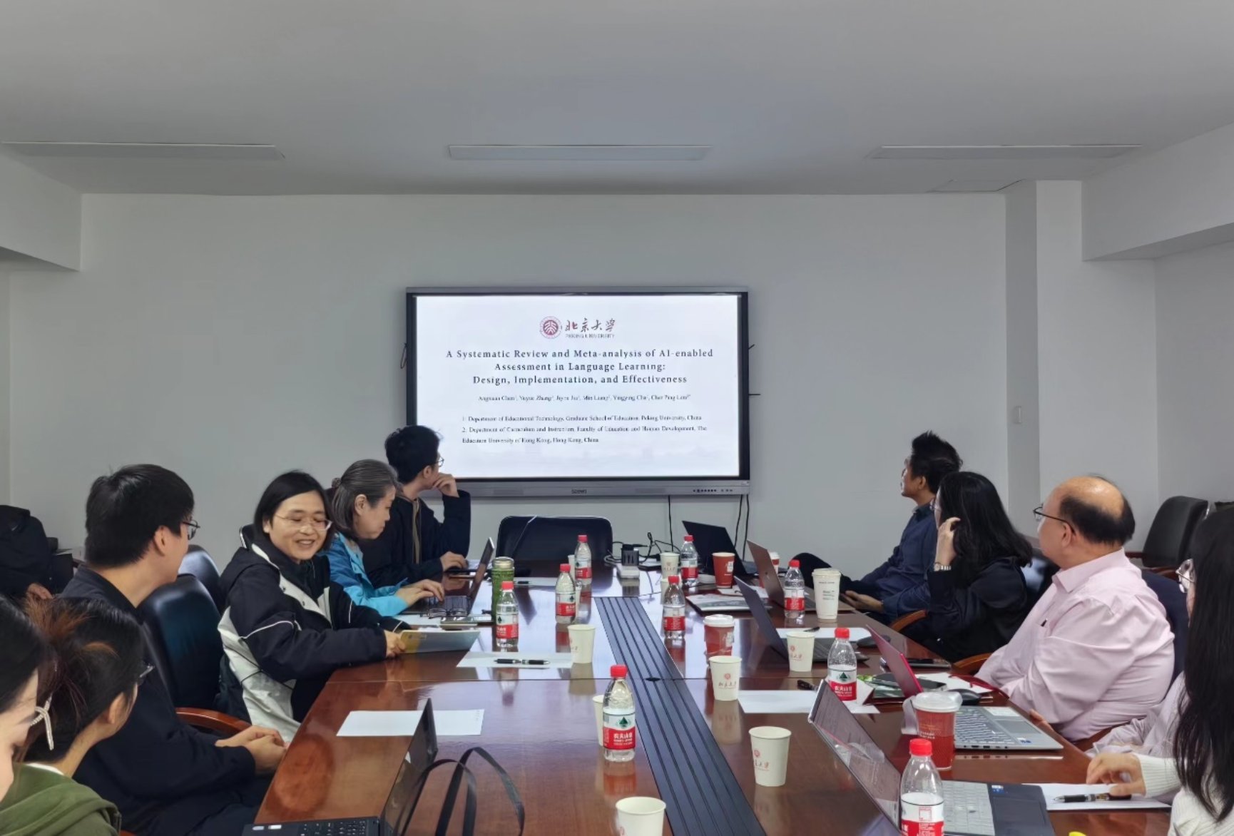 10月31日上午,合作项目交流研讨会在教育学院324进行。会议由教育技术系主任贾积有教授主持,参与会议的有教大代表团全体成员、MK体育官方网站院长阎凤桥教授、教育技术系副主任吴筱萌和王爱华副教授、范逸洲助理教授,以及教育技术系的7名博士生和硕士生。首先,阎凤桥院长对教大学者来访表示热烈致欢,简要介绍了教育学院的历史和现状,期待双方深化合作。然后,林教授介绍了香港教育大学和MK体育官方网站合作项目的进展,包括三个领域:人工智能等前沿技术促进学生成长、教师专业发展和课程变革。接着,教育学院博士生陈昂轩、李姗姗、文燕银和硕士生林易分别介绍了各自参与的文献元分析研究,双方师生进行了热烈讨论。