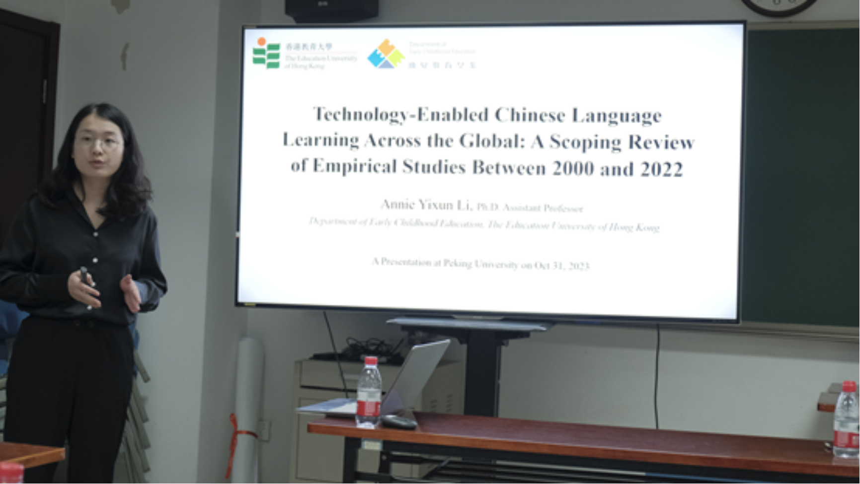 第三场讲座中,李宜逊博士报告了《2000年至2022年全球技术驱动型汉语学习实证研究》的文献综述,探究了在以往的实证研究中学习者的特点、在汉语学习中使用了哪些教育技术、如何利用教育技术学习汉语,以及学习者正在学习什么、学习发生在哪里(生态环境)、学习发生在什么时候(时间、空间和学习自我)。发现大多数研究集中在本科生或高等教育学生,技术主要集中于基于数字游戏的情境学习系统、模仿人类对话的聊天机器人、提供词汇表和多项选择题练习且纠正音调的语音软件等,而这些使用系统进行的汉语学习,所学的内容相对有限,且对教育技术作为学习环境的一部分的考虑的也有限。