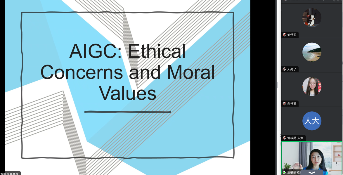 随后,王教授深入探讨了在教育环境中使用AIGC所设计的伦理问题。强调了四个需要研究的问题,分别为:内容拥有者、视频生成的相似性、聊天机器人制造的幻觉和滥用可能性。