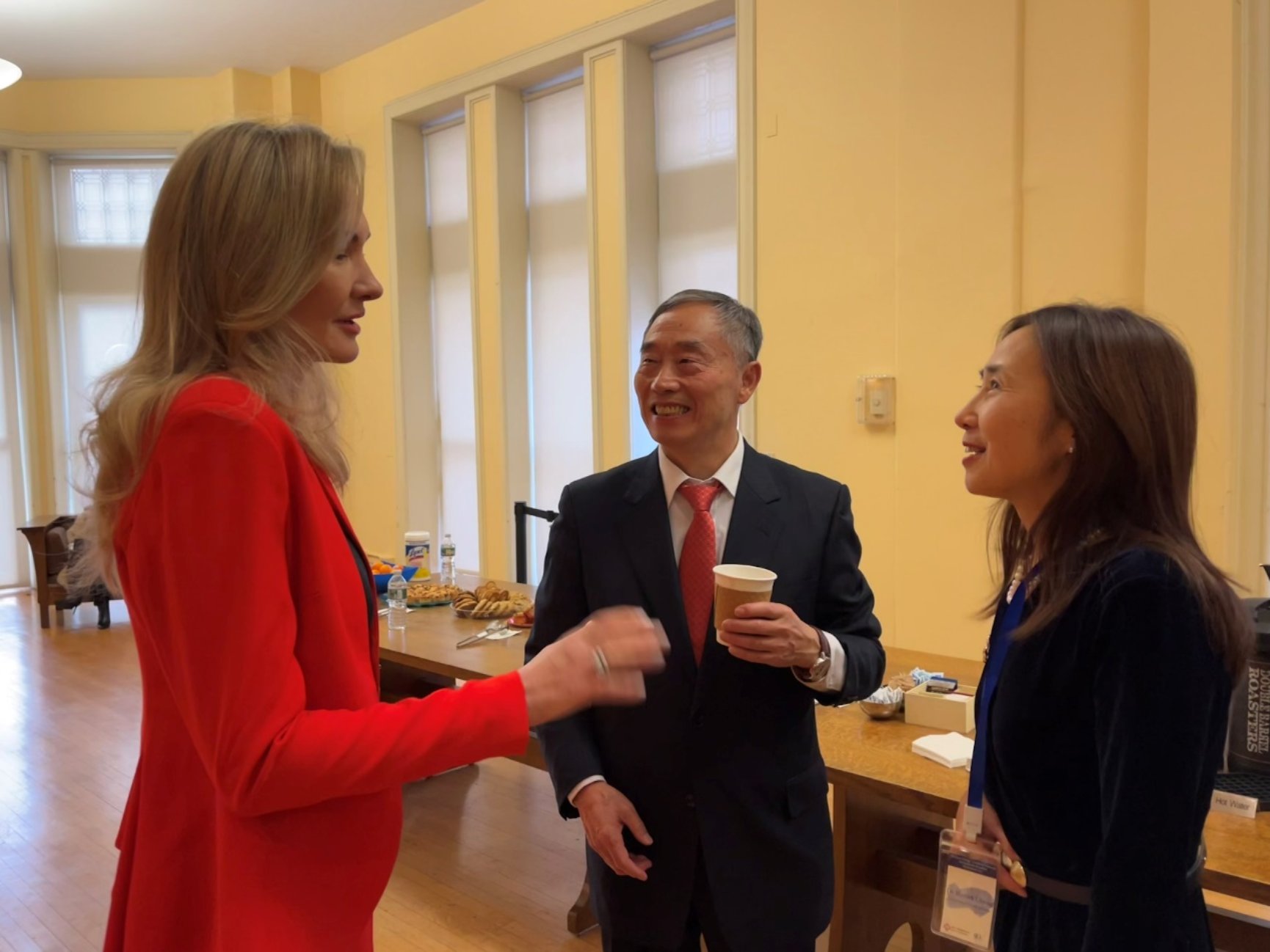闵维方教授同哥伦比亚大学教育学院中国教育研究中心执行主任程贺南教授,国际跨信仰研究中心主任Amra Sabic-El-Rayess副教授交谈