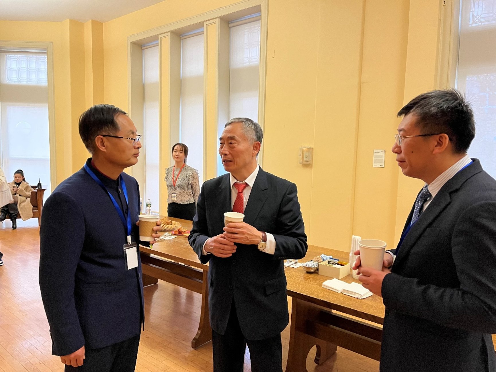 哥伦比亚大学教育学院院长Thomas Bailey教授、教务长KerryAnn O’Meara教授、教育经济学荣休教授Henry Levin教授、全球事务办公室Amine Mechaal主任、中国教育研究中心执行主任程贺南教授、国际跨信仰研究中心主任Amra Sabic-El-Rayess副教授等作为东道主出席本次研讨会。中国驻纽约总领馆黄屏总领事,比较与国际教育学会会长、加拿大西安大略大学教育学院教育政策与领导学系主任李军教授,华美协进社CEO葛晓初先生,以及清华大学教育研究院院长石中英教授、副院长张羽教授,北京师范大学国际与比较教育研究院院长刘宝存教授、副院长滕珺教授,浙江大学教育学院院长阚阅教授等嘉宾也都现场出席了本次研讨会。北京师范大学资深教授顾明远教授,多伦多大学安大略教育研究院的Ruth Hayhoe教授,华中师范大学国家教育治理研究院院长周洪宇教授线上发表致辞。本次研讨会线下参会人员接近200人,线上有超过400人参与。现场还有新华社北美总分会、美国中文电视台和侨报等媒体参与报道。