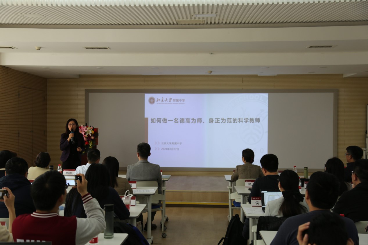 秦蕾老师致辞以“如何做一名德高为师,身正为范的科学教师”为主题,分享了她所理解的科学魅力和背后的科学家精神,结合实际案例,向同学们传递“保护每一位学生的好奇心”的教育理念。