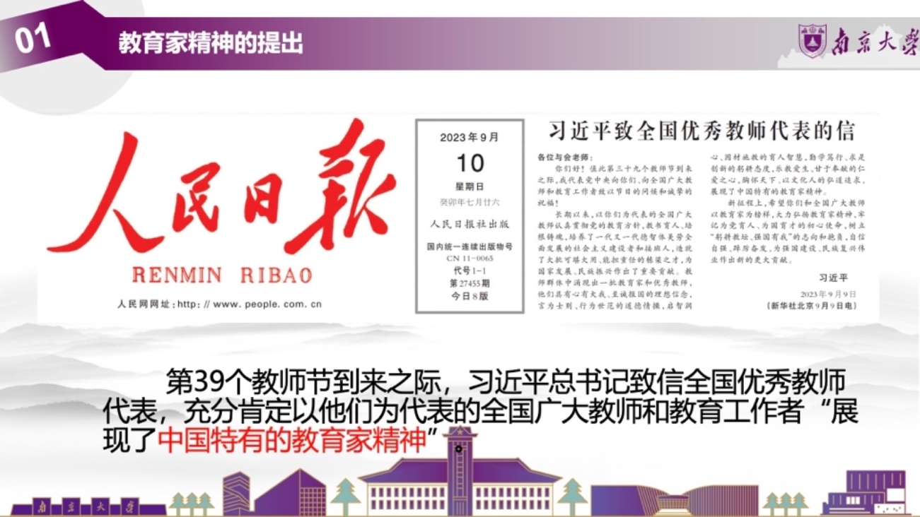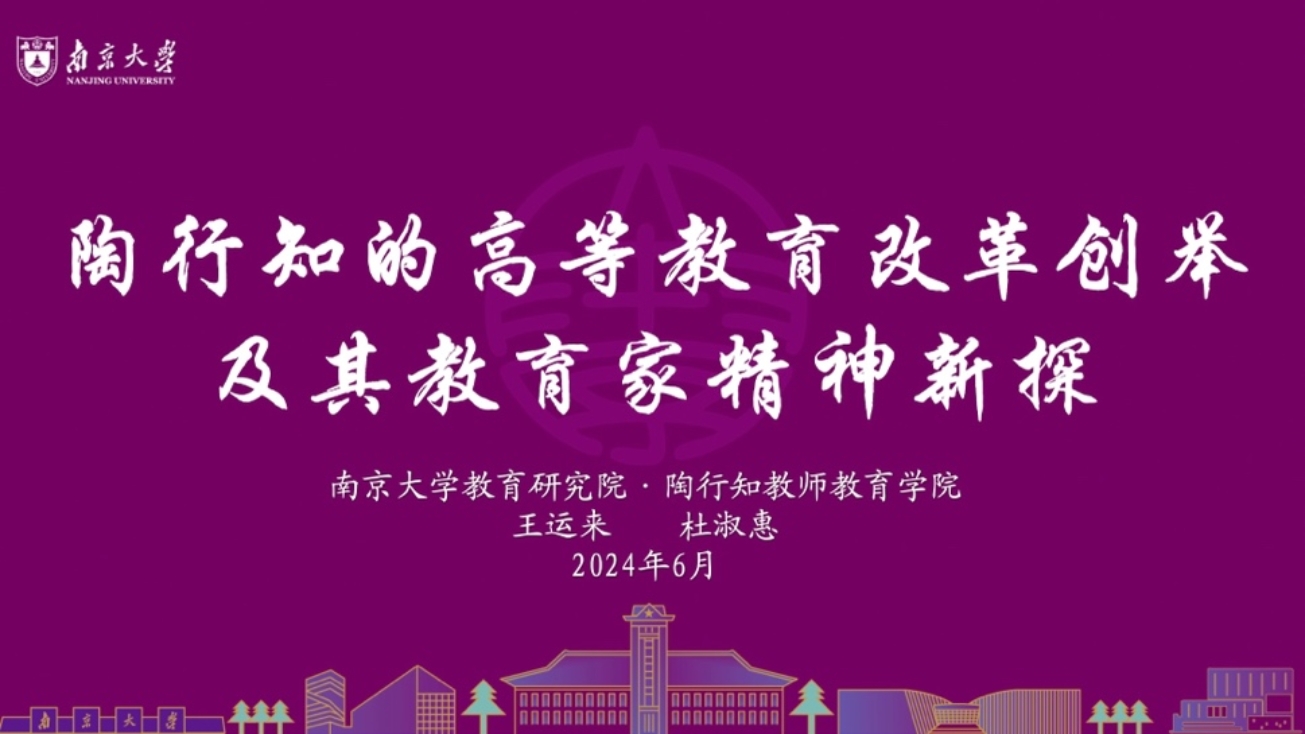 随后,王运来教授由教育家精神引出“革命的教育家”和“教育家的革命”的典范人物陶行知。他简要介绍了陶行知及其与“四有好老师”的关系,并带领大家走近南京大学校园里的“陶行知”。王运来教授指出,陶行知是南京大学的“双料校友”,对中国高等教育事业的发展有着巨大贡献:他力主首开“女禁”,开辟女子高等教育新天地;首倡“教学法”,以“学”为中心引领全国;引进“选科制”,拉开我国高校通识教育大幕;创办“暑期学校”,发出以教育改造社会的嚆矢;推重平等精神,彰显教育家育人智慧。如此贡献,也正表明了陶行知作为教育家具有的大爱精神、奉献精神、创造精神、求真精神和平等精神。王运来教授特别指出“平等精神”最能彰显陶行知的育人智慧。陶行知教育以承认和尊重学生的个别差异为出发点,在平等自由竞争的环境当中,有的放矢地进行教育,引导学生各显其能、各自发展——既包含了不让学生掉队的初衷,又保有让优秀者自由发展的开放——这也正与习近平总书记谈道中国特有的教育家精神不谋而合。