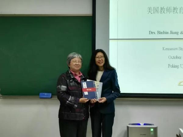 2016年10月16—20日,美国肯尼索州立大学贝戈维尔教育学院教育领导系姜玢玢教授应邀来我院访问讲学。10月19日,姜玢玢教授做了题为《美国教师教育新动向》的讲座,介绍了美国最新的教师教育改革政策和项目实践。