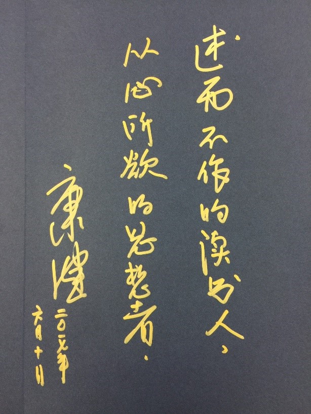活动结束后,康健教授与参会同学合影留念,并为同学们发表寄语:“述而不作的读书人,从心所欲的思想者”。寄语饱含了康健教授年近古稀的人生体验,启迪同学们对学术和人生进行更深入的思考和探索。