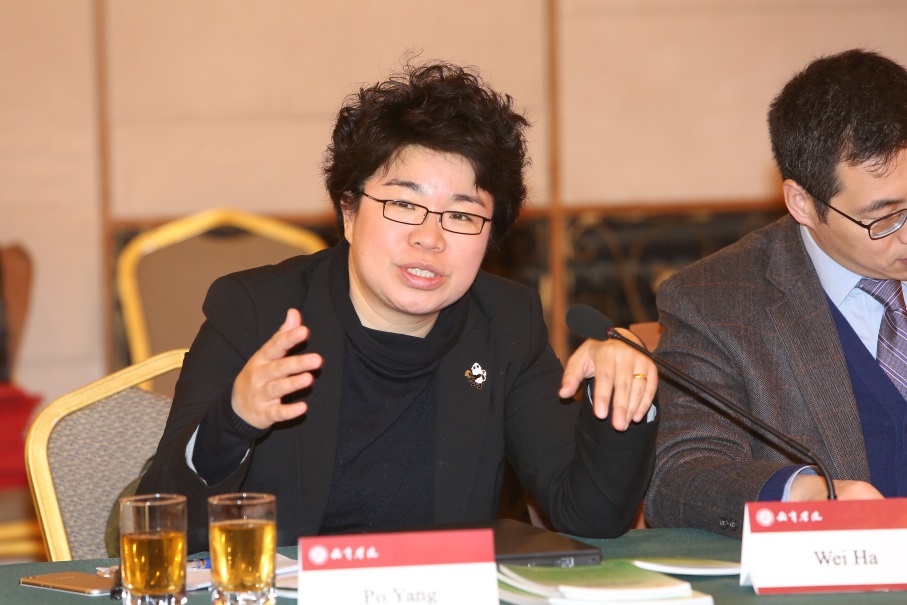 在座谈讨论环节,孟方代表就职业教育顶岗实习时间分配、如何提高项目国际化水平以及如何引入外资等问题进行了积极的提问,杨钋副教授和哈巍研究员逐一进行回答。