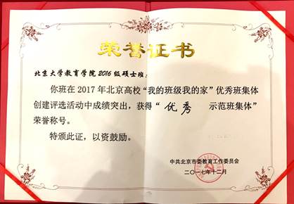 MK体育官方网站2016级硕士班获评 2017年北京高校“优秀示范班集体”