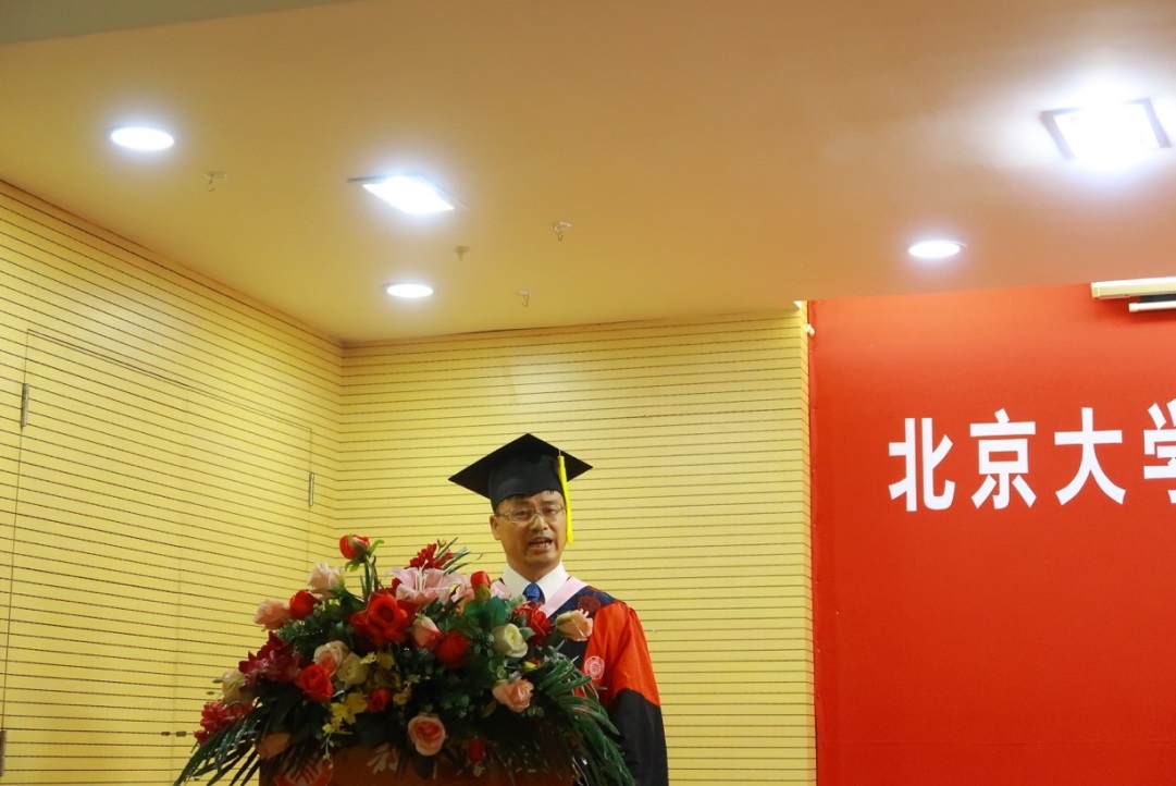 导师代表文东茅教授发表题为《路在脚下,道在心中》的精彩演讲。他提出,教育的根本任务是士人找到正道,要通过阅读经典、终身学习,走进自然、真知笃行,走向内心、向善向上三种途径,找到正确的人生方向。他还勉励毕业生既要仰望星空,找到“北”,又能不忘初心,走向“大”,做一个有“北”且“大”的北大人。毕业生同学深深地为文东茅老师的真诚所感染。