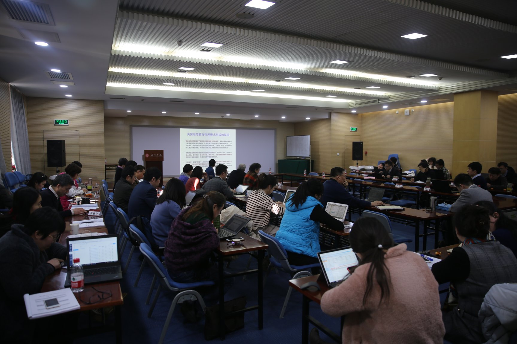 在下午的学术交流环节,教育经济与管理系系主任丁延庆老师主持第一阶段的交流,该系蒋承、陈晓宇、郭丛斌三位老师分别做题为《文质乃成——对近期几个研究工作的分享》、《教育财政均衡与中小学布局布点研究》、《介绍北京大学江山教育大数据平台情况》的交流发言。接着,教育管理与政策系系主任鲍威老师主持第二环节的交流,该系文东茅、林小英、郭建如三位老师分别做题为《教育与幸福:初步的思考与实践》、《扩大学生选择还是别无选择:重审高考改革的价值取向》、《地方高校转型发展研究:组织转型、培养模式变革与学生发展》的交流发言。下午第三个交流环节由教育技术系系主任尚俊杰老师主持,该系汪琼、吴筱萌、吴峰三位老师分别做题为《关于MOOC,我们知道了什么?》、《学校教育信息化建设现状调研与问题探讨》、《信息技术对高等学校的影响》的交流发言。在以上各交流的评议和讨论环节,参会教师踊跃发言,就有关论题展开了深入的讨论,会场气氛热烈。